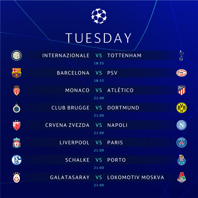 1 mun bayern munich. 3 lmo lokomotiv moscow. 4 rsb red star belgrade. The 2018 19 uefa champions league was the 64th season of europe s premier club football tournament organised by uefa and the 27th season since it was renamed from the european champion clubs cup to the uefa champions league for the first time the video assistant referee var system was used in the competition from the round of 16 onward.