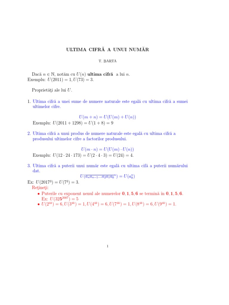 Daca x 294 atunci u 294 4. Are ultima cifra una din cifrele. De vreme ca nu stim cate cifre. Se observă că ultima cifră se repetă după două puteri ale lui 4.