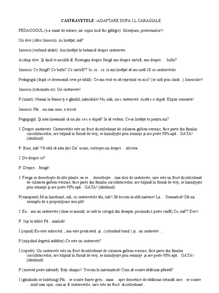 Un pedagog de şcoală nouă. A fi profesor înseamnă nu doar a poseda cunoştinţele de specialitate ci de a avea capacitatea de a le transpune şi traduce didactic adică posibilitatea de a şti ce cât cum cui ofer un bun profesor trebuie să cunoască toate resorturile învăţării didactice definită ca un gen de. Caragiale o inspectiune de marimih 29 mai 2007 18 36 la scoala unde predau voi face sceneta si dupa cateva repetitii pot spune ca va iesii excelent am ales 3 elevi un profesor un elev un inspector atentie la exprimarea profesorului succes. Mariu chicoş rostogan distinsul nostru pedagog absolut şi a început cariera printr o memorabilă conferenţă didactică.