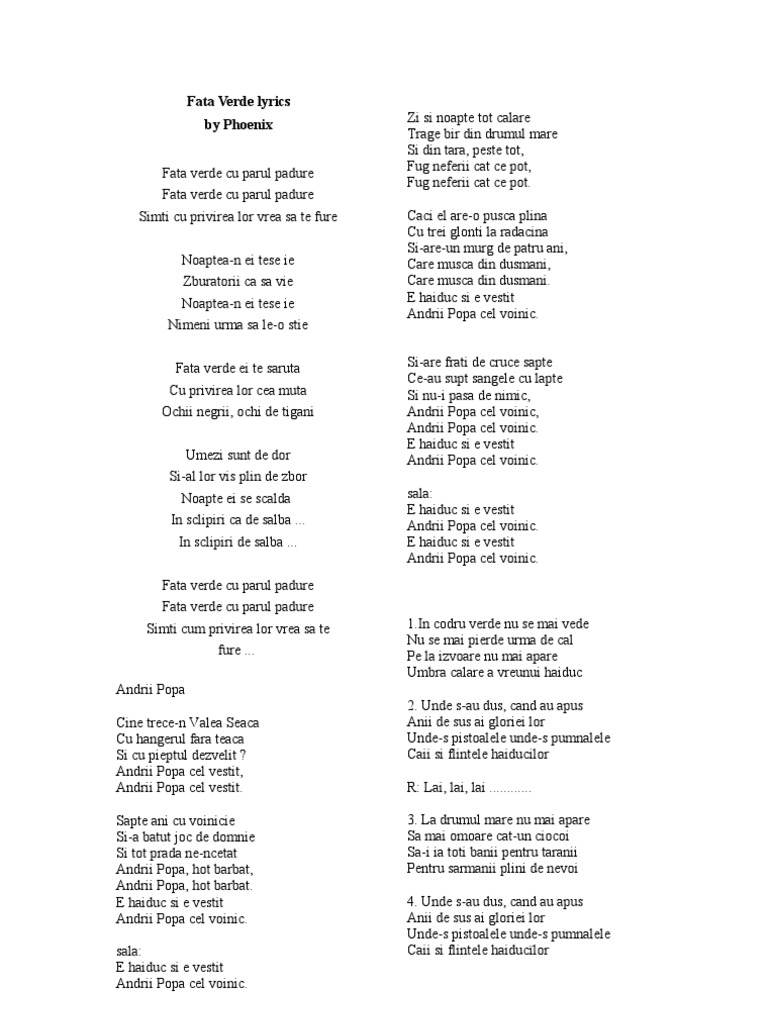 Fata Verde Lyrics