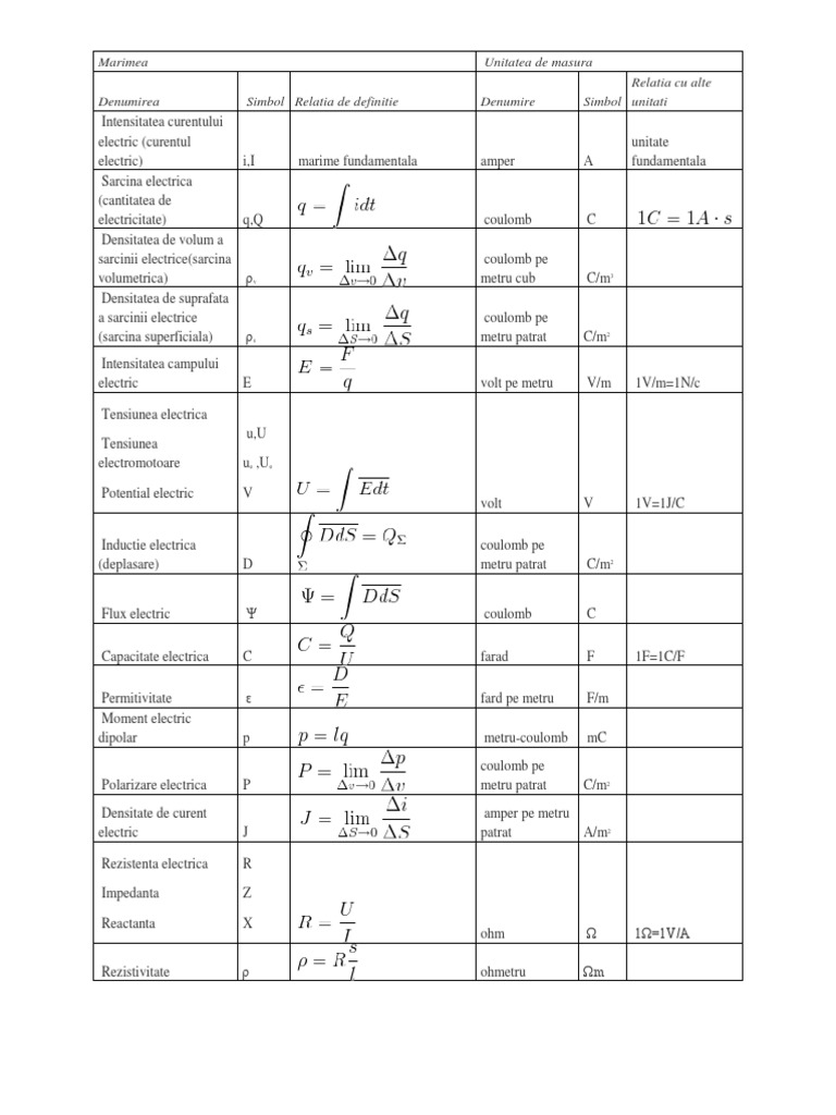 Et Unitati De Masura Marimi Si Denumiri
