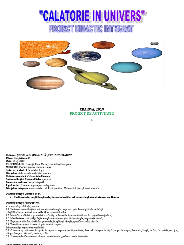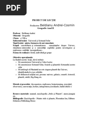 Proiect De Lectie Soarele Planetele și Viața Pe Pămant