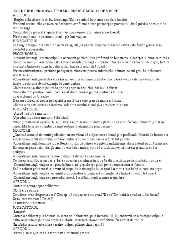 Are un singur fir narativ accentul cade pa intamplari si nu pe personaje iar dimensiunile povestirii se situeaza intre nuvela si schita. Ursul începe a mormăi cumplit ş a sări în sus de durere. De la o vreme ursul nemaiputând suporta durerea cozii şi de frig smuceşte odată din toată puterea. Puteti gasi foarte multe referate accesand categoriile din partea dreapta despre ursul pacalit de vulpe comentariu uita te mai jos si o sa gasesti cele mai relevante rezultate pentru cautarea ursul pacalit de vulpe comentariu.